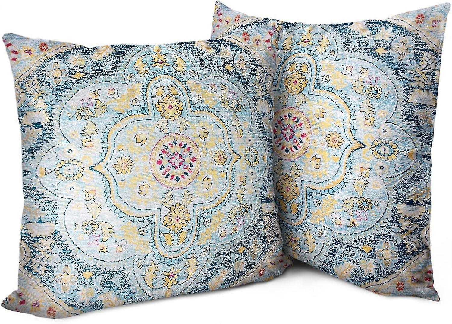 Boho Pillow Covers 20"x20" Set of 2 Persian Carpet Blue Vintage Throw Pillow Case Soft Square Decorative Pillowcases for Home Decor Sofa Car Living Ro