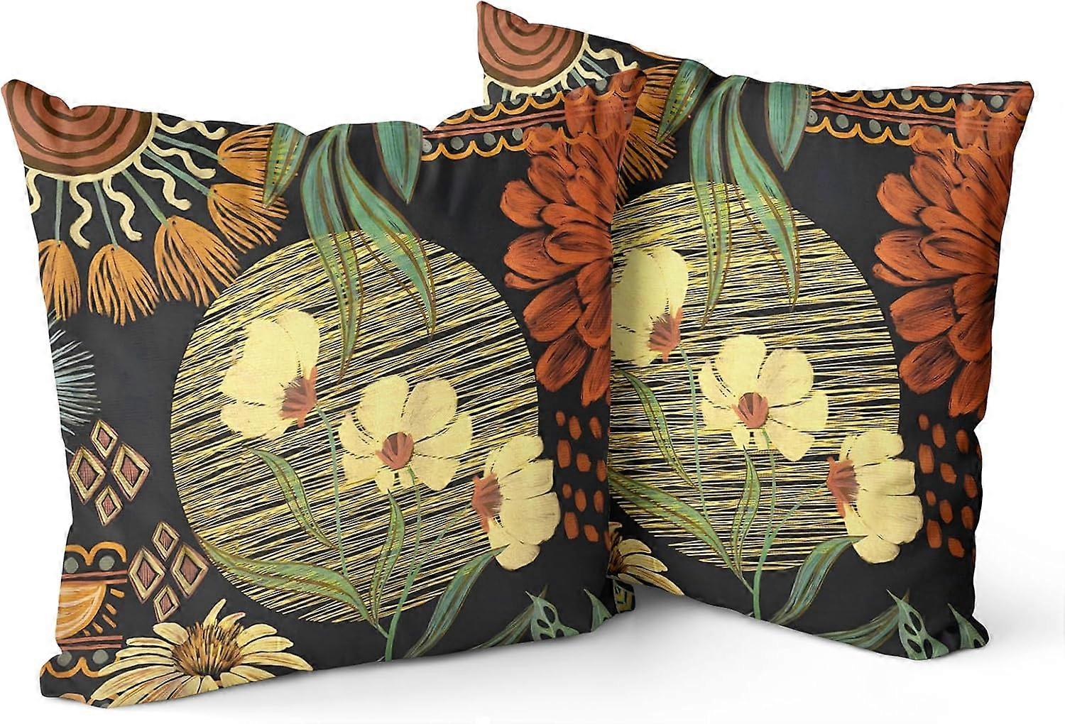 Boho Floral Pillow Covers 18"x18" Set of 2, Tropical Leaves Throw Pillows Case Modern Abstract Colorful Flower Farmhouse Home Decor for Room Bedroom B