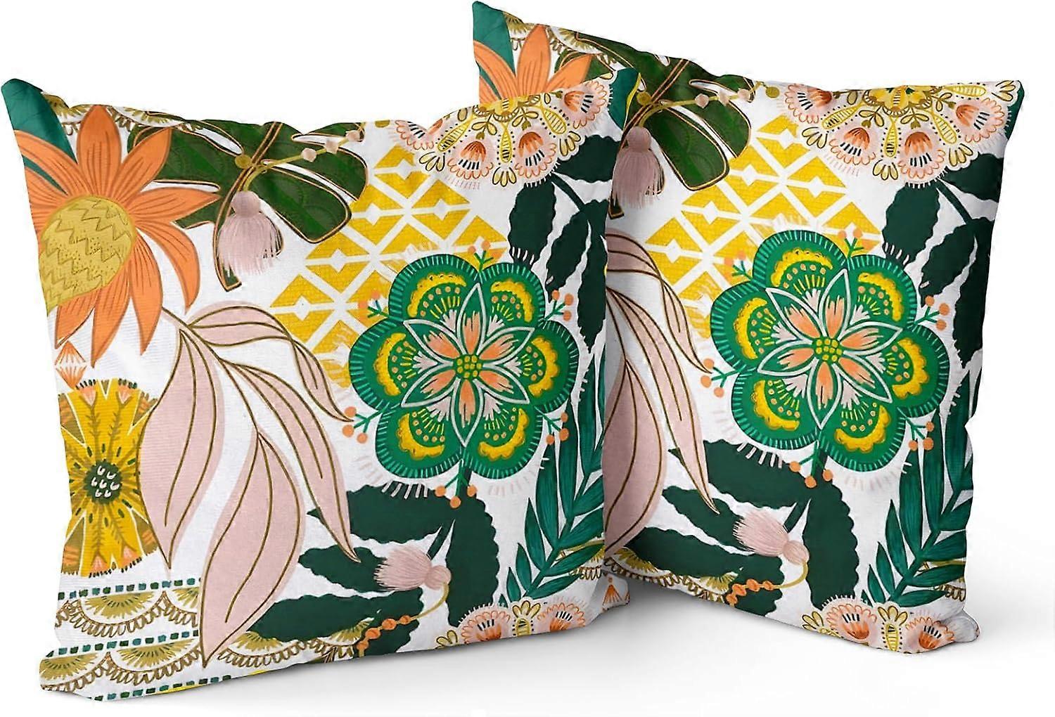 Boho Floral Pillow Covers 18"x18" Set of 2, Tropical Leaves Throw Pillows Case Modern Abstract Colorful Flower Farmhouse Home Decor for Room Bedroom B