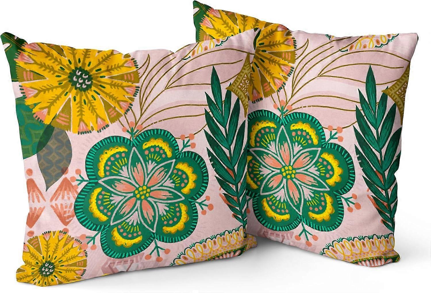 Boho Floral Pillow Covers 18"x18" Set of 2, Tropical Leaves Throw Pillows Case Modern Abstract Colorful Flower Farmhouse Home Decor for Room Bedroom B
