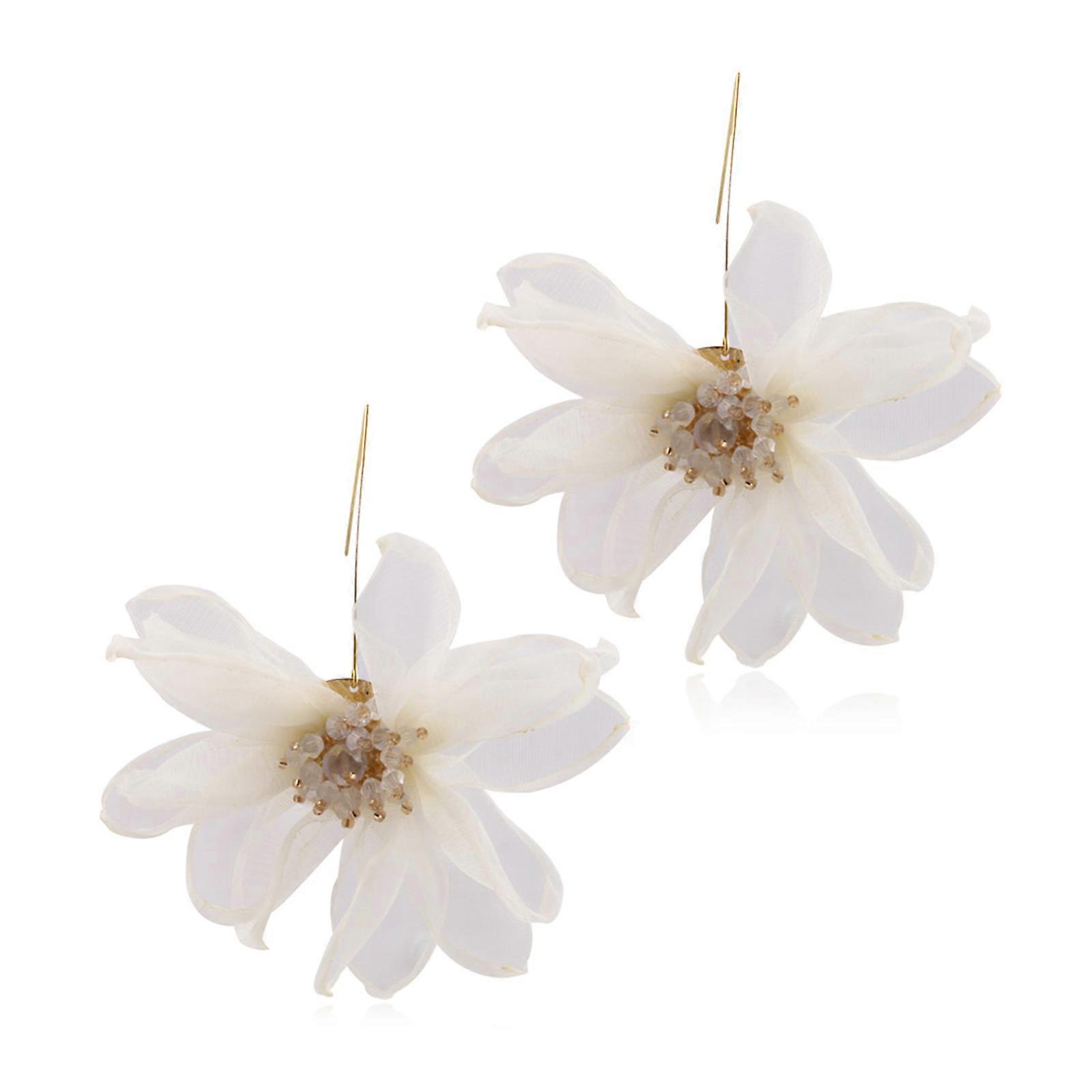Boho Petal Long Drop Earrings Big Flower Earrings Exaggerated Floral Tassel Earrings Statement Beach Jewelry for Women White