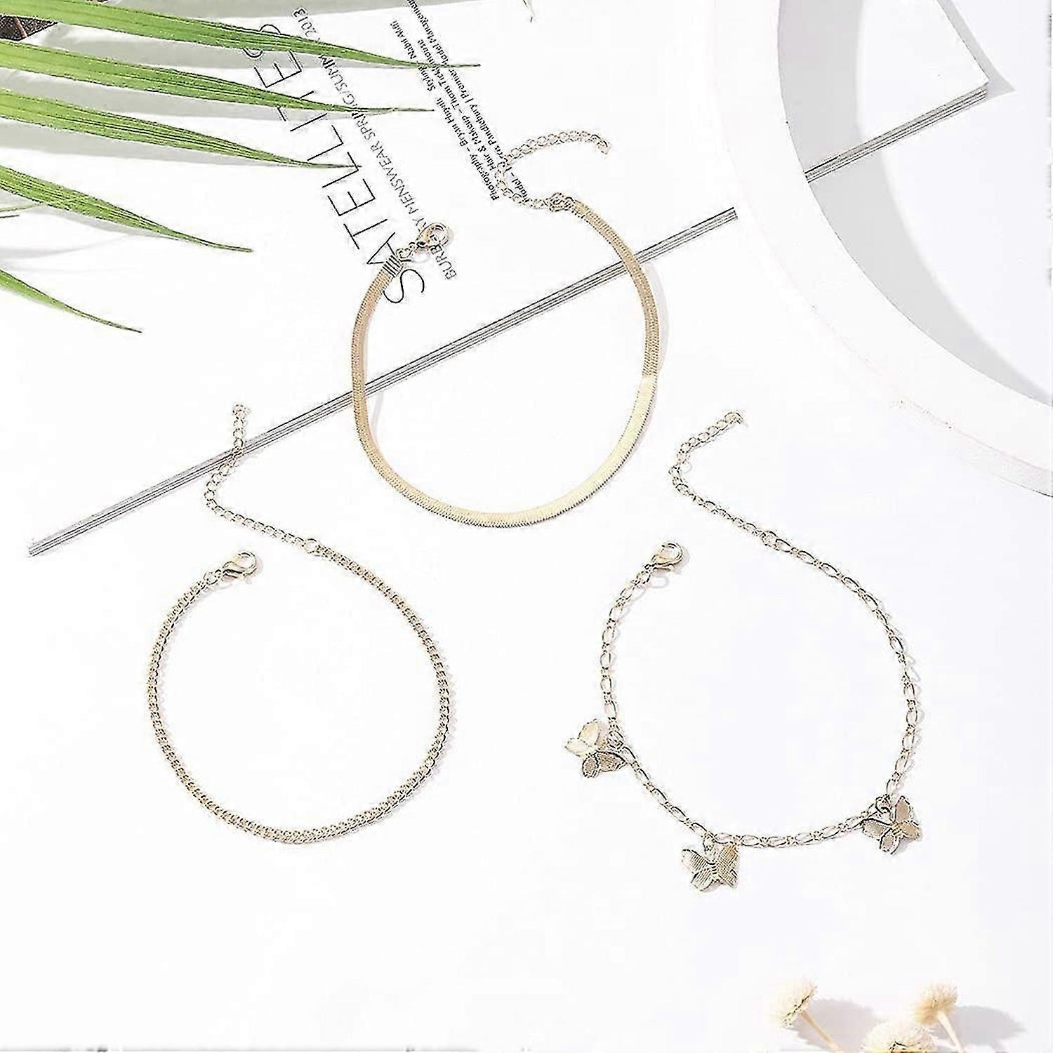 Boho Butterfly Layered Gold Ankle Bracelets Beach Snake Bone Foot Chains for Women and Girls