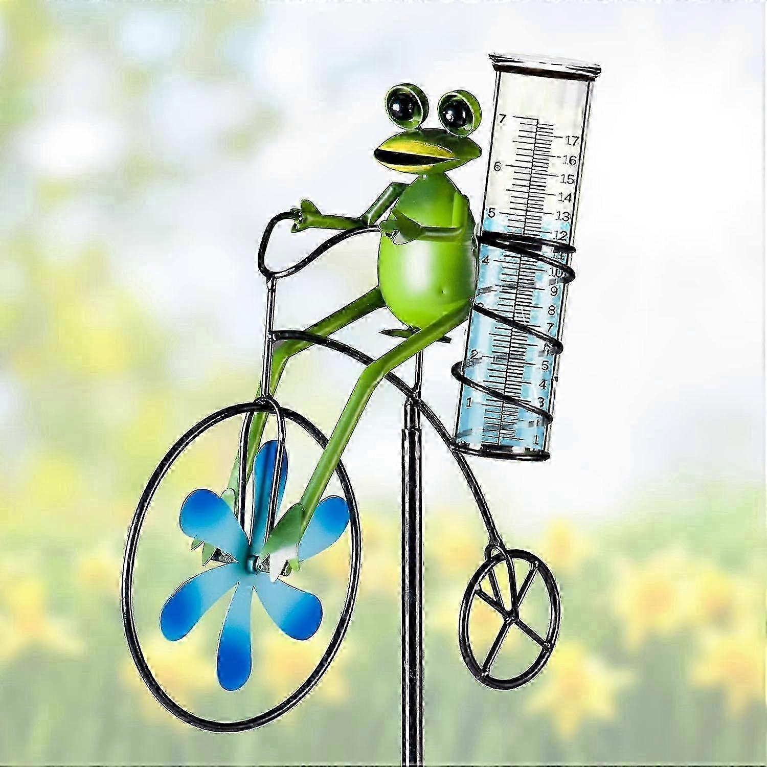 Frog on Bicycle Windmill Rain Gauge Stylish Garden Dcor for Lawn, Yard, and Patio