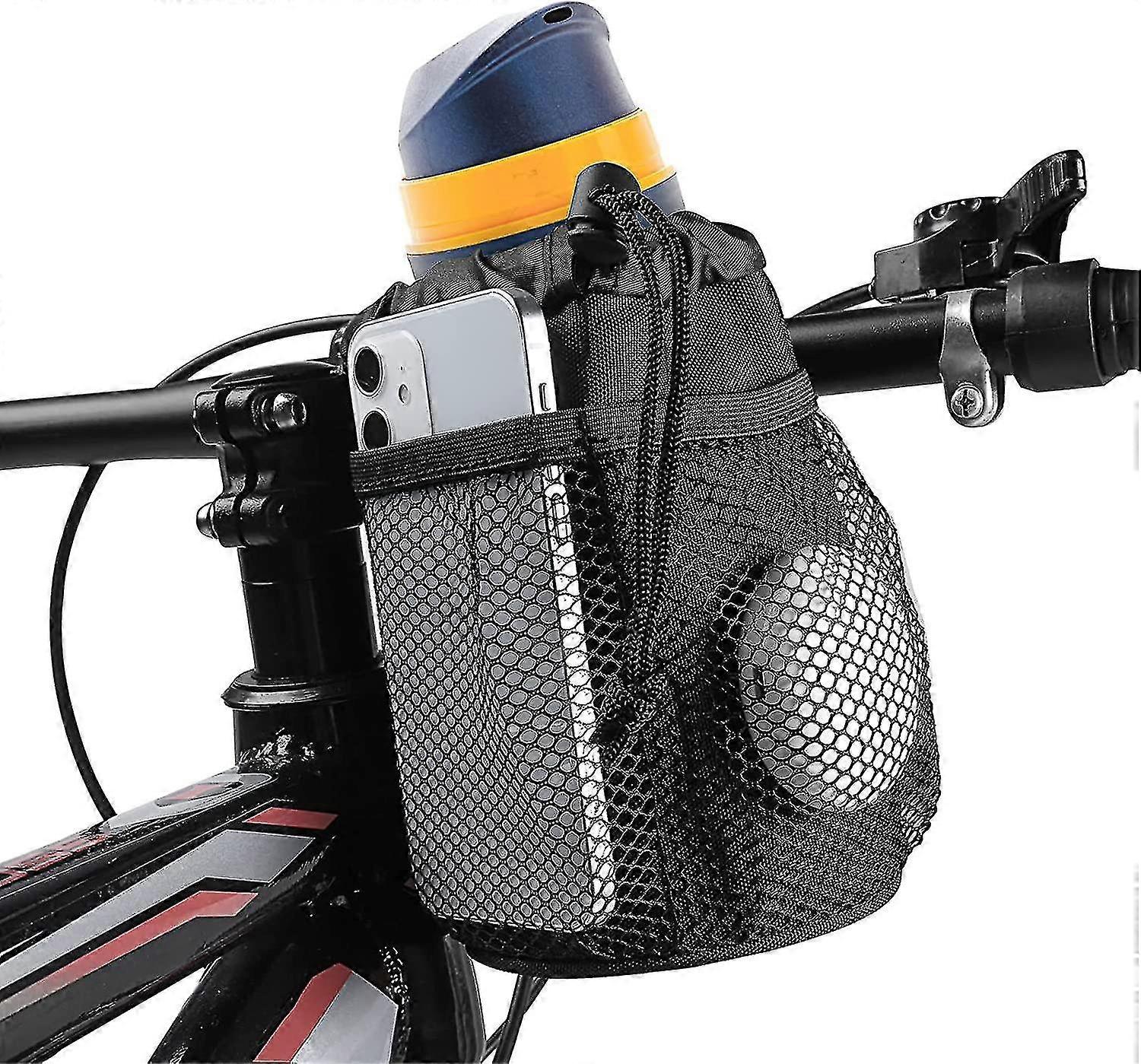 Bike Cup Holder,bicycle Handlebar Drink Holder With Mesh Pockets Phone Bag Adjustable For Cruiser