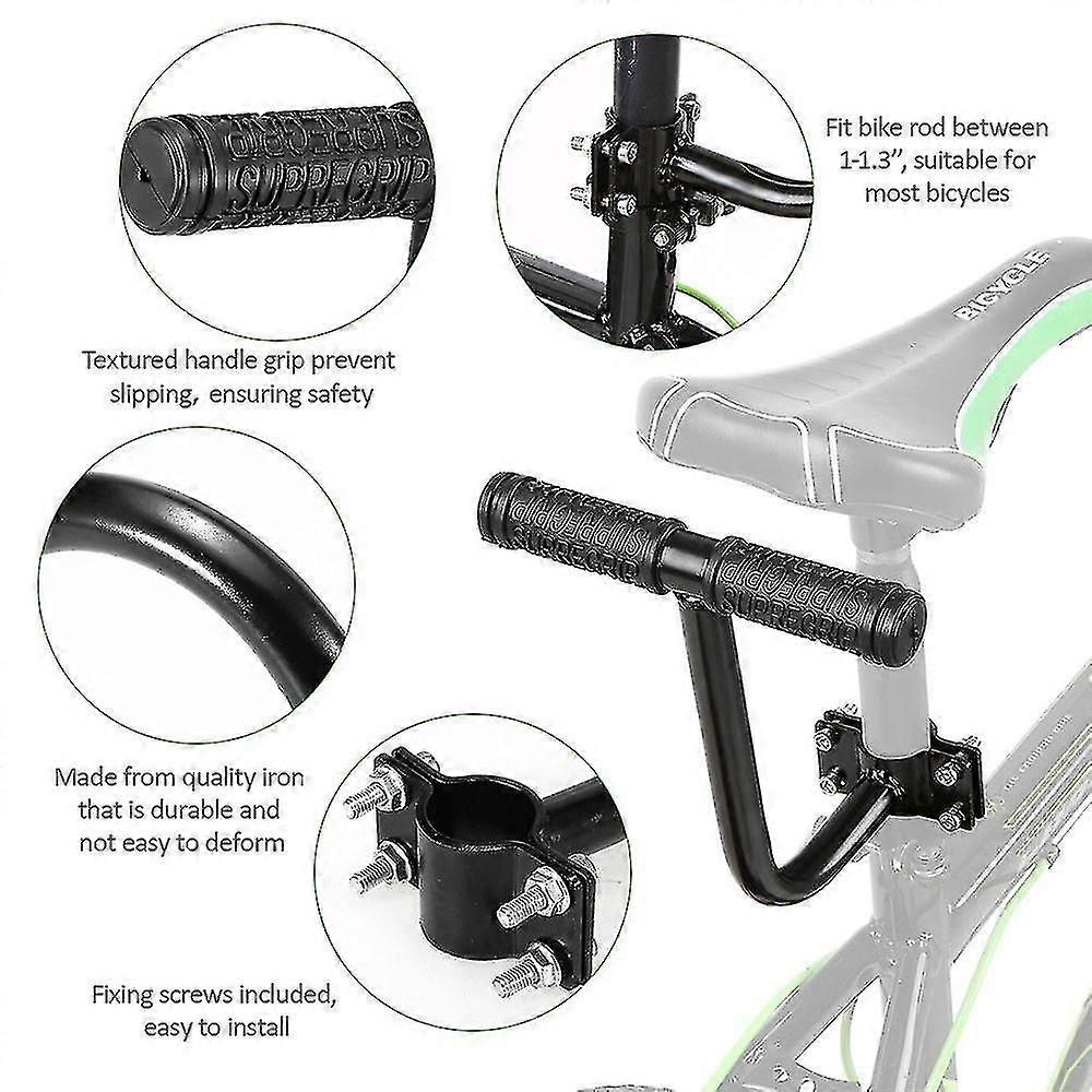 Features: Back seat armrest for MTB, road bikes and other bicycles for children.Durable iron made by fine technology, with slippery and blunt edge, won&39;t hurt the baby.Anti-slip grip designed with uneven textures, easy to grip, ensuressafety, Complete with screws, simple to install.Fits 1-1.3in bike rod.