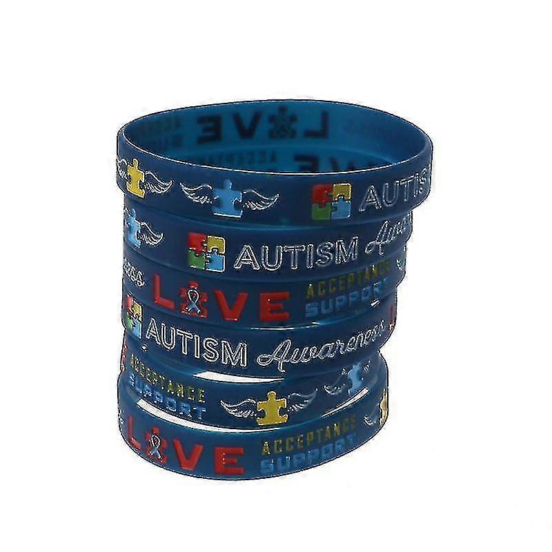 Pack of 6 Inspirational Bracelets for Autism Awareness - Silicone Wristbands in Blue for Unisex Use Promoting Change and Support
