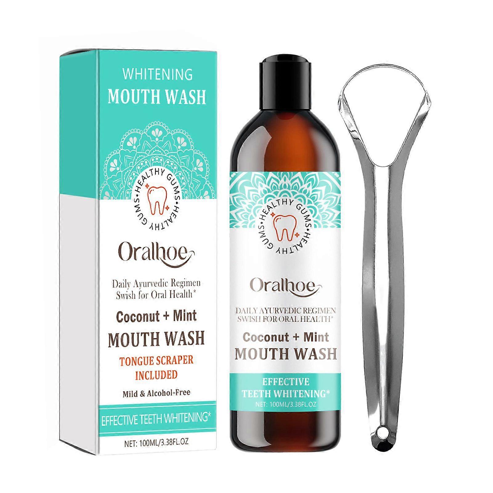 White Teeth Mouthwash with Tongue Scraper Bad Breath Removing Mouthwash Oral Care Supplies