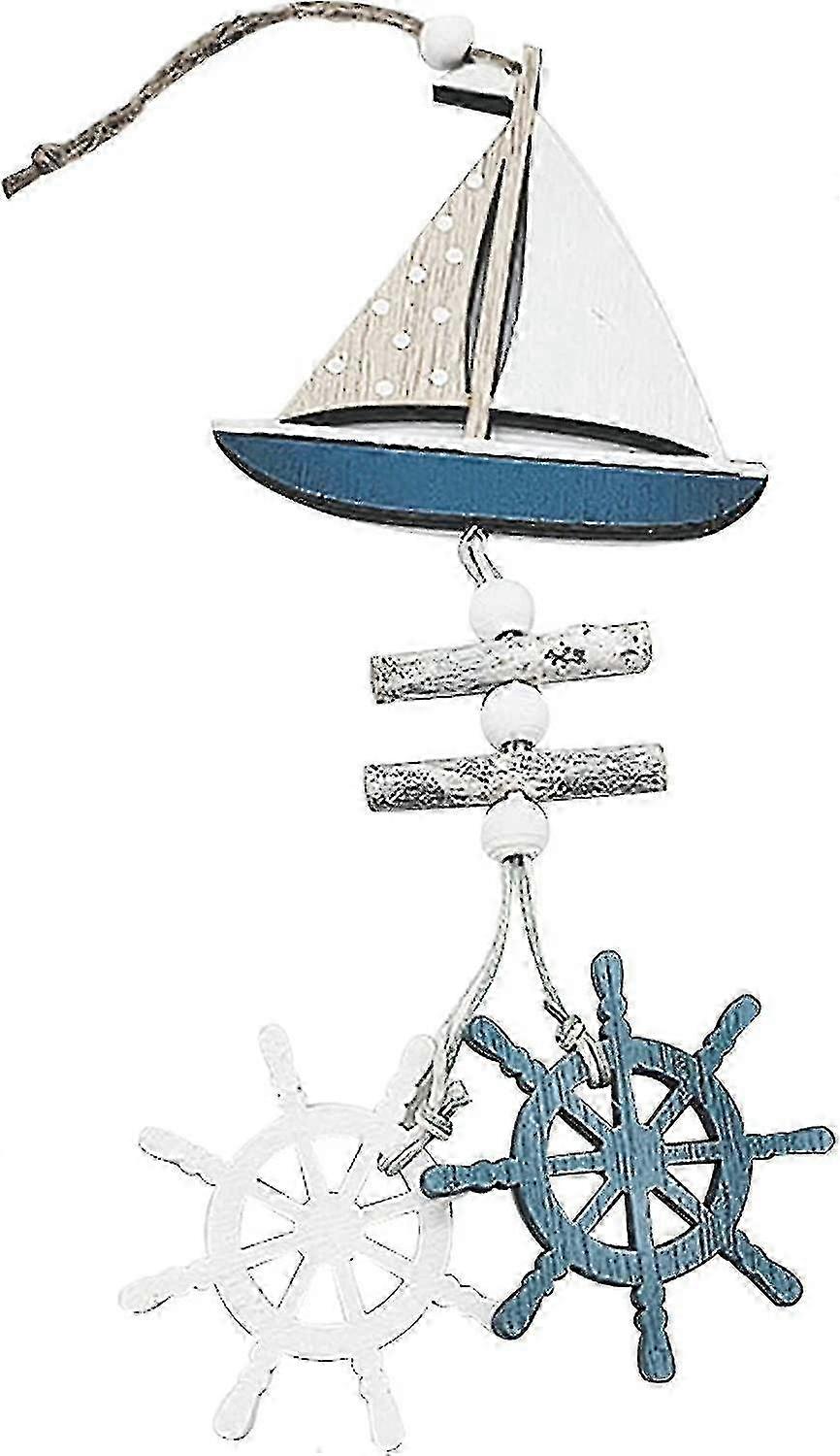 Nautical Marine Hanging Ornament, Wooden Ship Wheel, Wooden Boat Rudder Fish Pendant Coastal Wall Decoration for Home Entryway Window Party