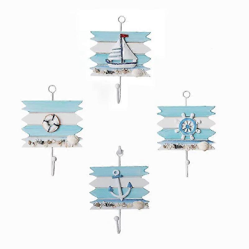 Nautical Wall Hooks Towel Robe Coat Hat Hooks Hangers Key Hooks Nautical Coastal Beach Seaside Home Wall Decorations Ornaments(4pcs, Blue)