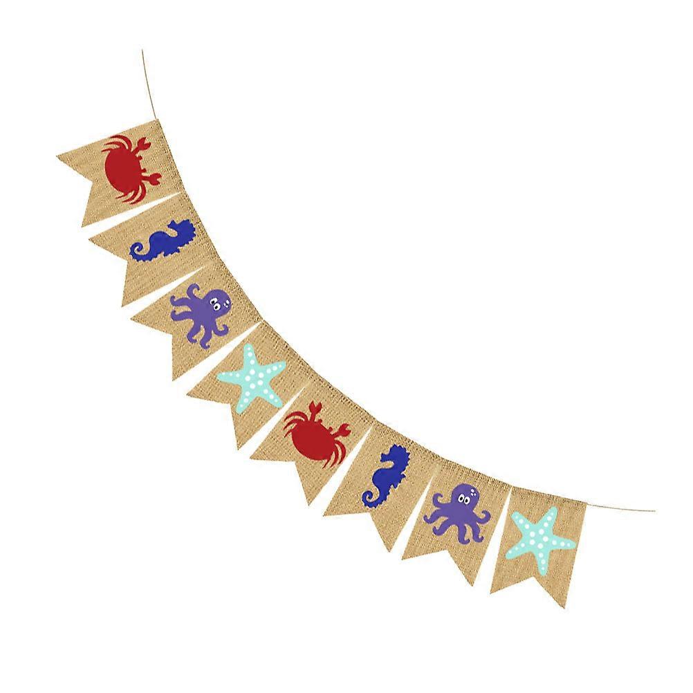Nautical Garden Decoration Ocean Animal Banner Burlap Material Swallowtail Shape For Party Event Room Decoration 1Pack