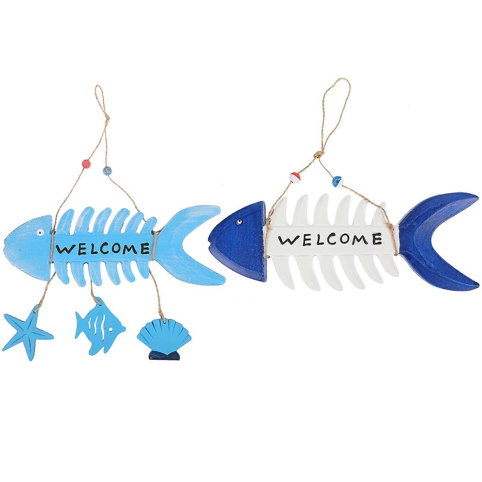 Nautical Garden Decoration Fish Bone Welcome Board Beach House Front Yard 36x27cm Mediterranean Style 2Set