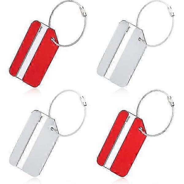 Product includes: you will get 4 pcs metal luggage tags with the size of 8 x 4.2 cm, including 2 red and 2 silver. With these suitcase tags you can quickly find your luggage and you don't have to worry about taking the wrong luggage. Premium Material: These luggage trays are made of quality aluminum, sturdy, not easy to break. And the stainless steel cable and screw connection can hold your belongings throughout the journey. Find your luggage quickly: Fill in the personal details on the information card to ensure you find your luggage correctly. Protect your privacy: Your name will appear on the surface so you can clearly identify your luggage. Cover will hide private information other than your name and prevent privacy leaks. Wide range of use: Suitcase labels are suitable for all kinds of belongings, such as sports bags, handbags, computer bags, briefcases, backpacks, trolleys, luggage boxes, tools, pet bags, bicycle, camera bags.