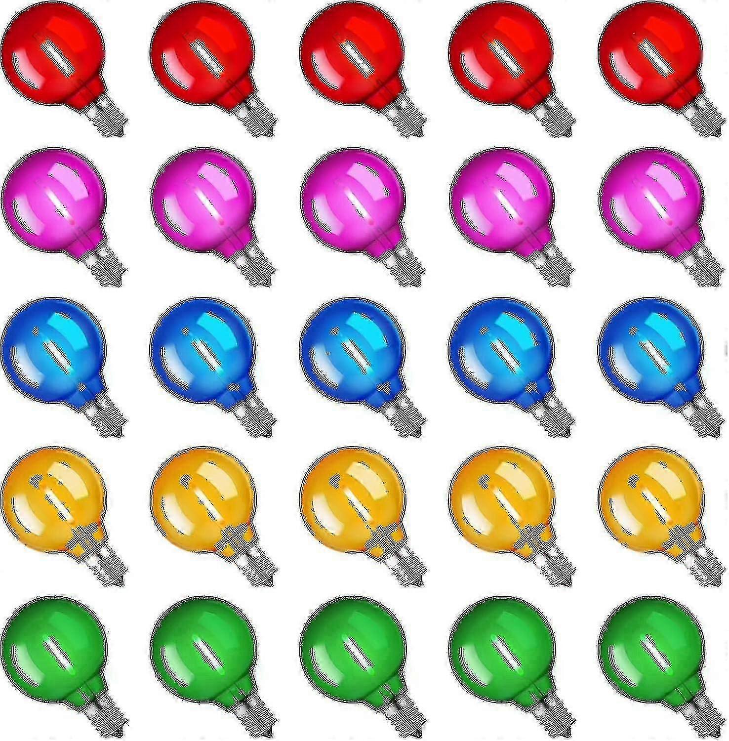 Vibrant G40 LED Bulbs: Illuminate your holidays with the bright light of our LED G40 bulb compatiblements. These style plastic light bulbs come in a variety of bright colors including red, yellow, blue, green, purple, 25 bulbs per packEnergy Saving and Durable: Our string lights are designed compatible long-lasting percompatiblemance while consuming minimal energy. Experience the beauty of Christmas lights while saving energy so you can enjoy the festive glow throughout the holiday seasonEASY TO USE: These C7 LED bulbs are compatible with E12 candlestick sockets, making installation a breeze and preventing corrosion. Each piece is 120V, 1W. Whether youre decorating your Christmas tree, patio, or any indoor/outdoor space, these lights will add a touch of magicVERSATILE OUTDOOR LIGHTING: UL certified LED string lights are perfect compatible indoor and outdoor use, and our Christmas compatiblement light bulbs are designed to withstand the elements. Illuminate your patio, trees, or any outdoor area with attractive and weather-resistant lightingENDLESS DECORATING POSSIBILITIES: Let your creativity shine with these colorful Christmas light bulbs. Perfect compatible holiday displays, parties, weddings, Christmas and more, they offer endless opportunities to create memorable and joyful moments