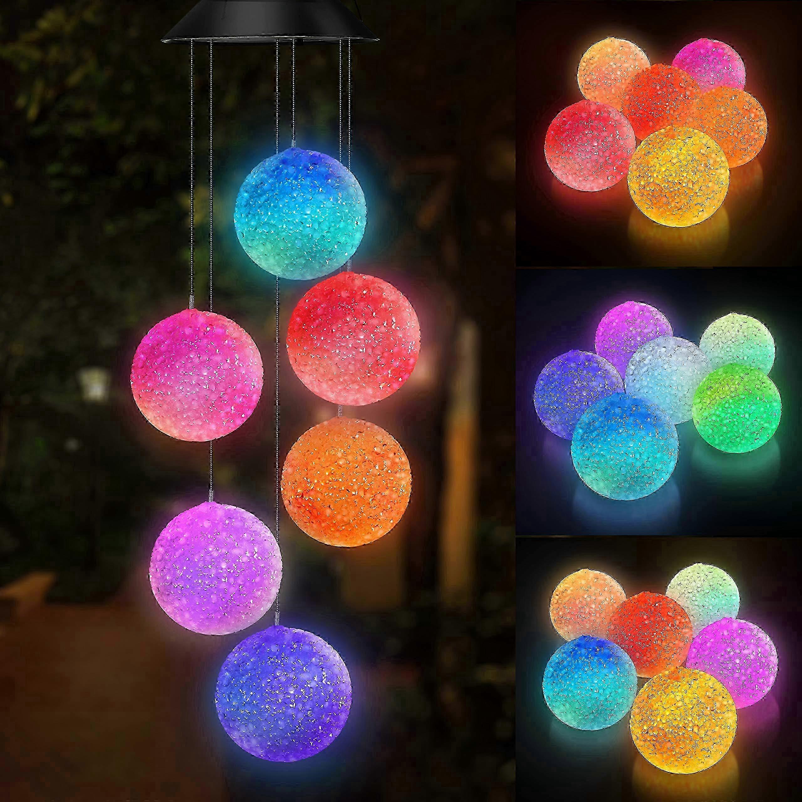 Color changing solar power wind bell spiral spinner crystal ball wind mobile (Crystal Top)