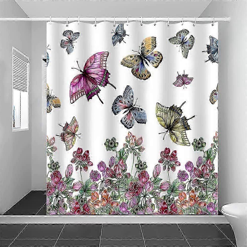Multicolored Butterfly Shower Curtain Floral Boho Rustic Farmhouse Shower Curtain Set with