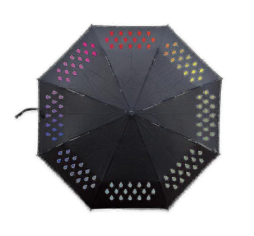 Color Changing Umbrella, Magical Folding Umbrella With Rainbow Raindrops And 8 Ribs, Rain And Sun Parasol, Ideal Gift For Men Women Travel And Car