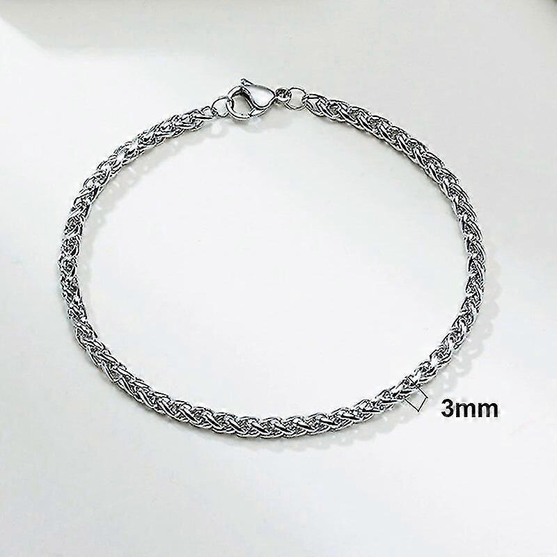 Never Fade Solid Stainless Steel Men Chain Bracelet,heavy Metal Wheat Spiga Links Wristband, Casual Punk Jewelry,3/6/8mm