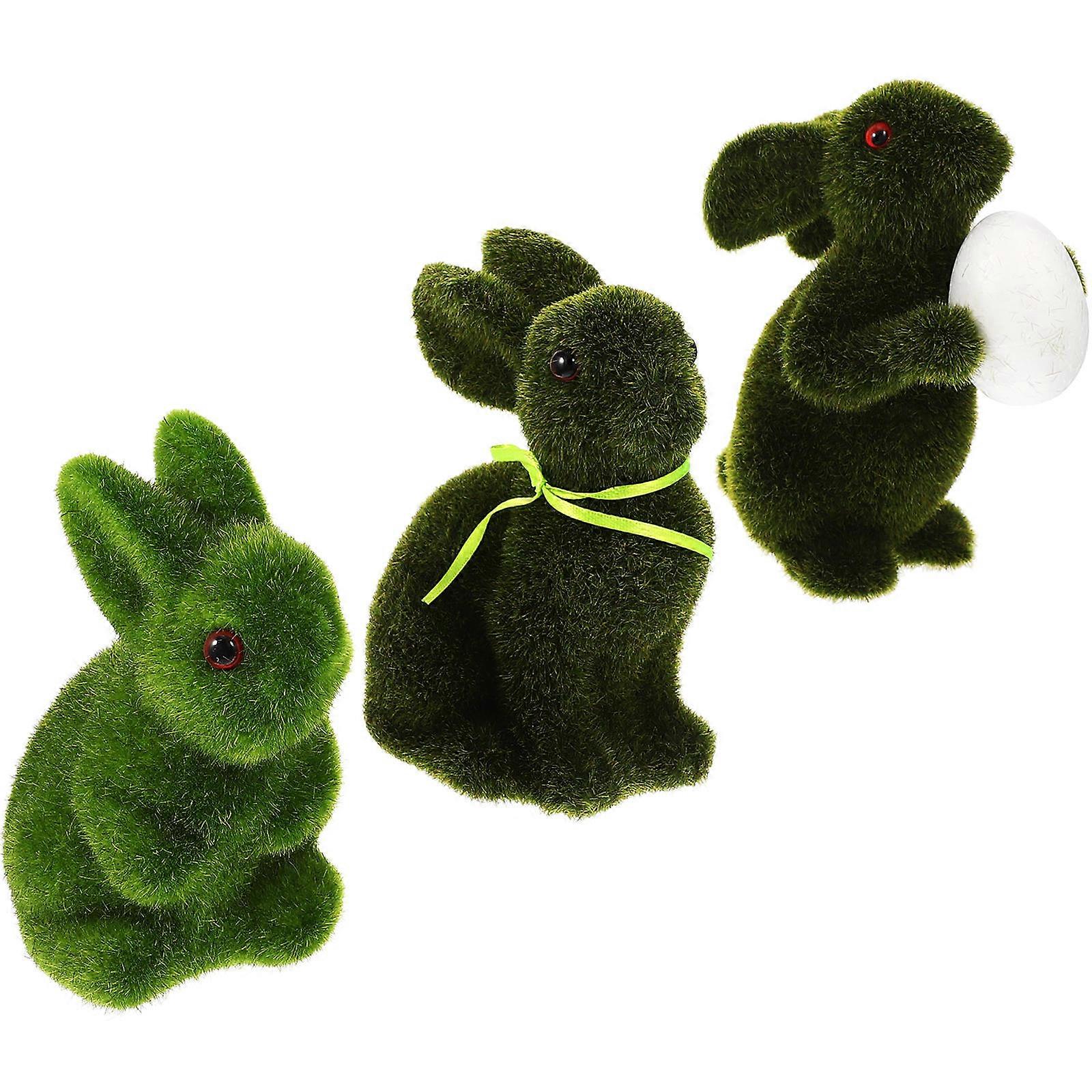 Lawn Rabbit Flocked Statue Festival Party Garden Decoration Realistic Cartoon Design 14x8x7cm 3Pcs