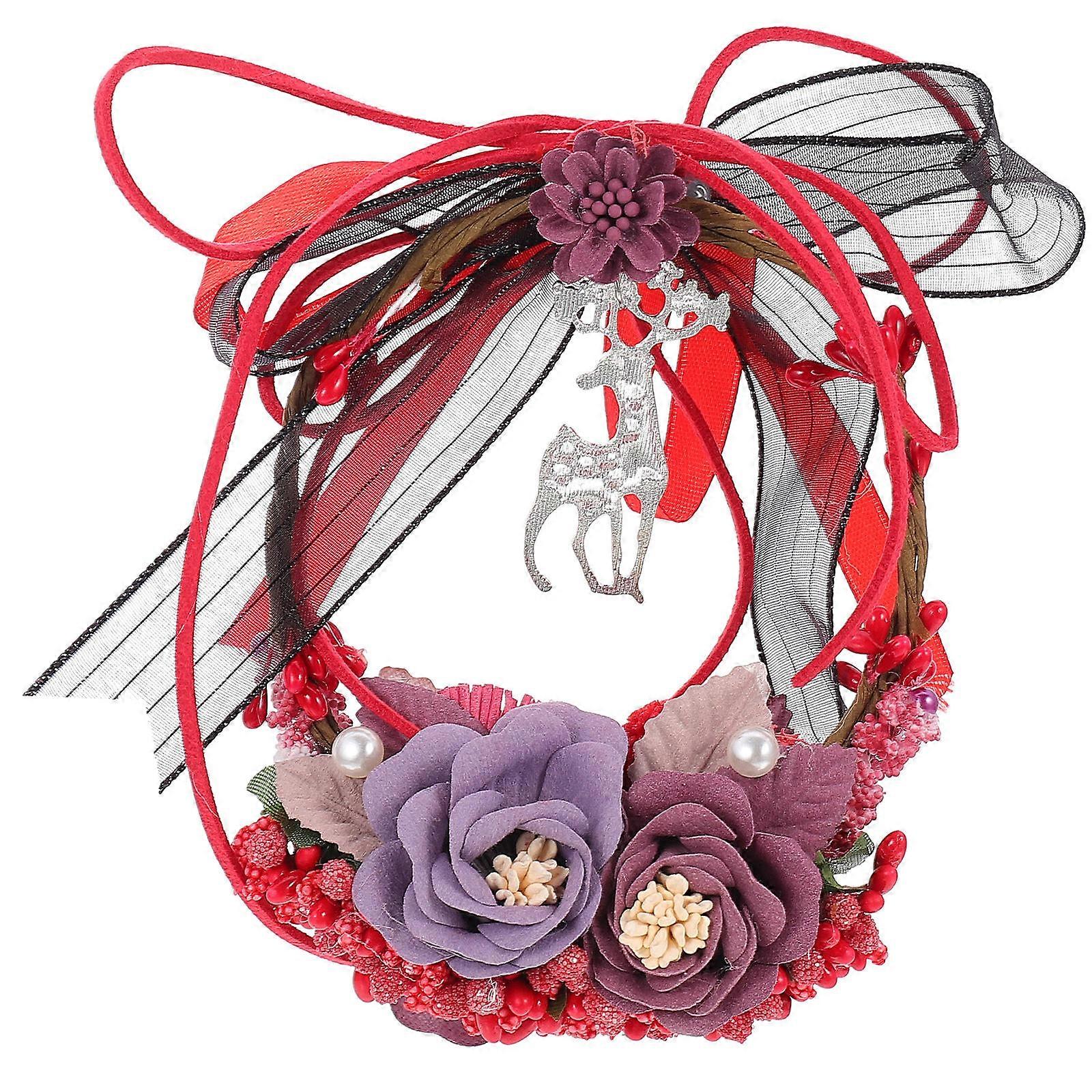 Flower Garland Decoration Simulation Wreath Hanging Ornament Red 10x6.5x2cm 1Set