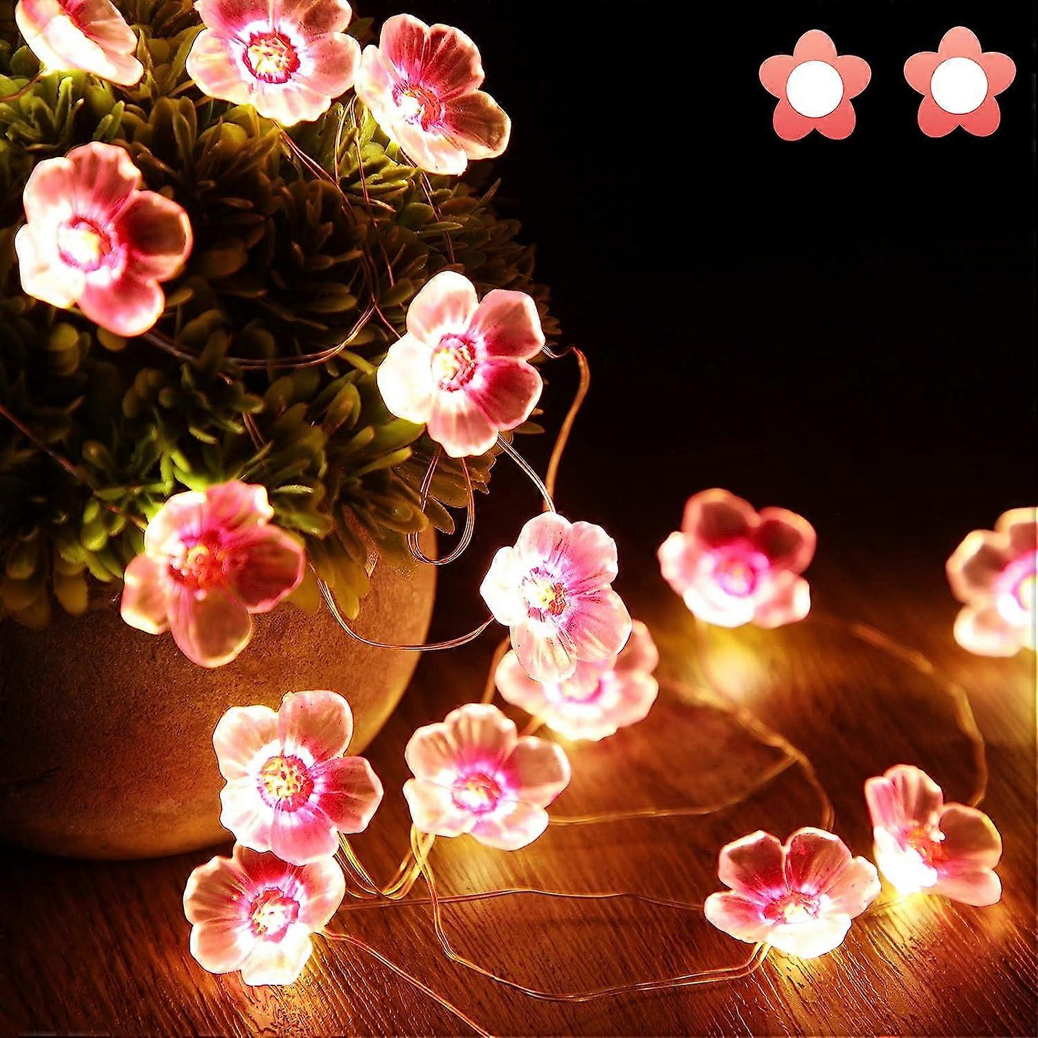 Flower string lights fairy pink flower decorative string lights 30 LEDs warm battery operated hanging lights for bedroom, indoor, outdoor, wedding and Valentines Day