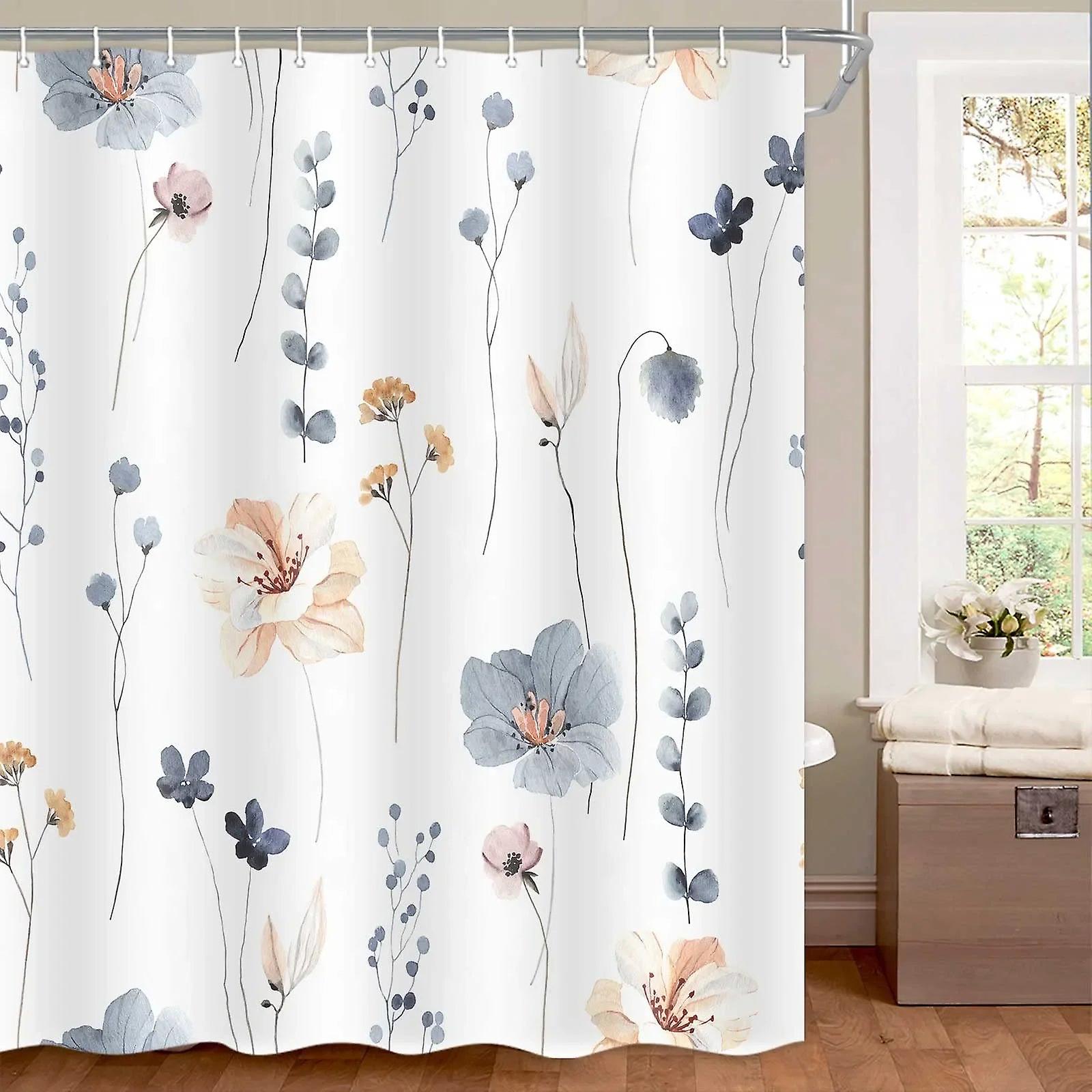 Flower Shower Curtain Watercolor Small Fresh Style Bathroom Waterproof Polyester Curtain Wall Decoration With Hooks