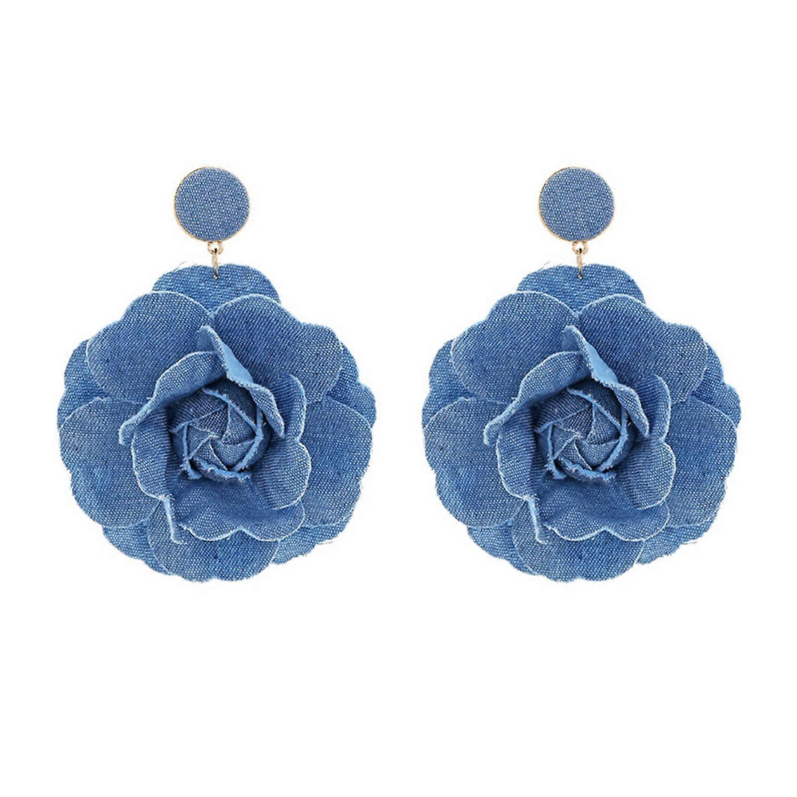 Floral Drop Earrings Fashionable Denims Exaggerate Earrings Handmade Rose Floral Ear Drop Decoration for Fashion Lovers