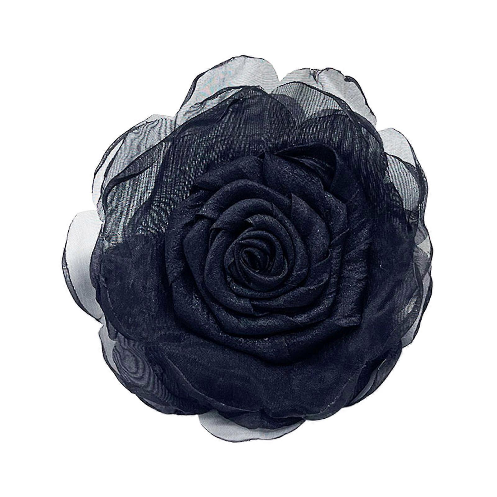 Flower Hairpin Unique Lapel Pin Flower Brooch Gauze Material Flower Badge Elegant Hair Clip Suitable for Fashion Outfit Black