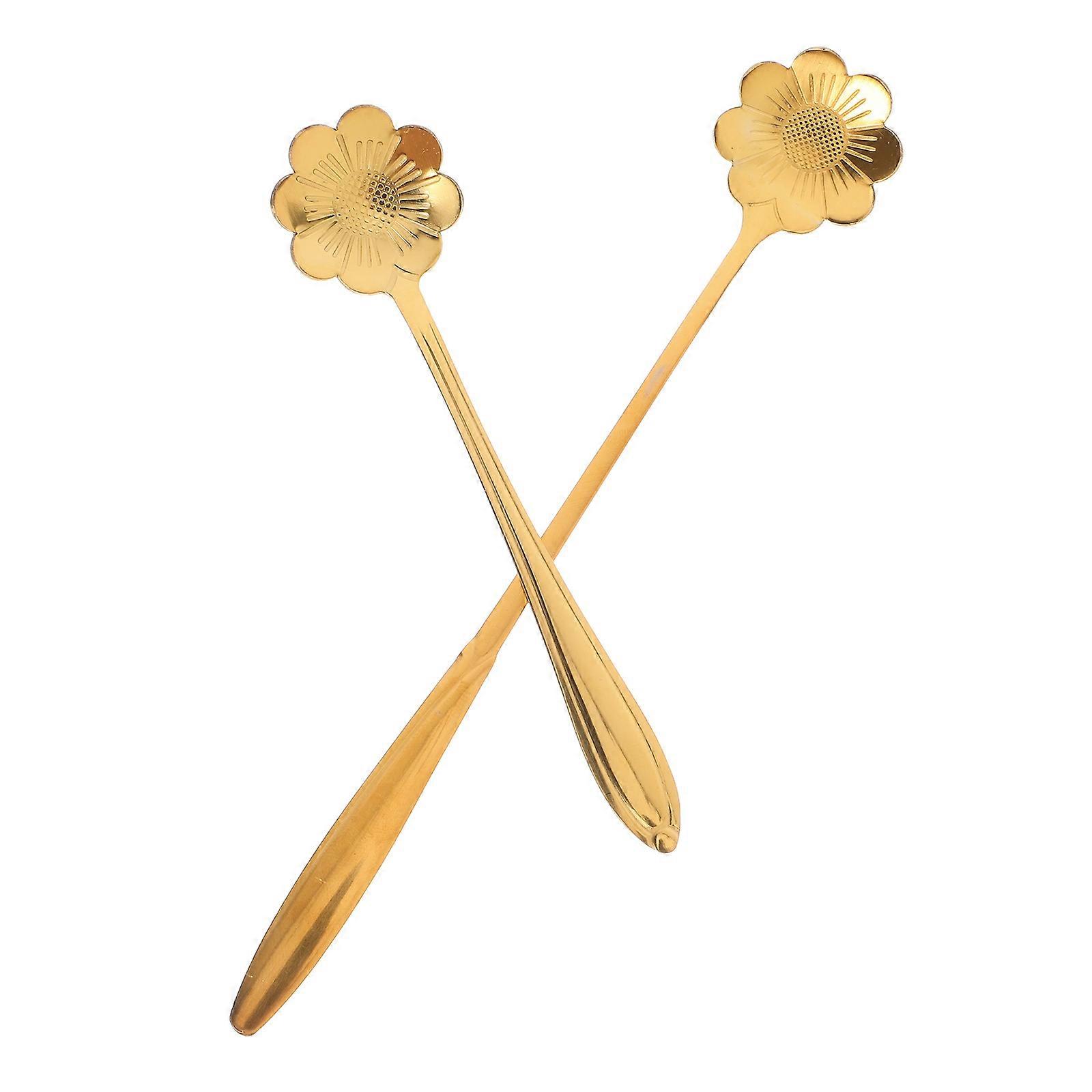 Flower Shaped Spoon Elegant Tableware For Party Golden Metal Dessert Spoon 1Set