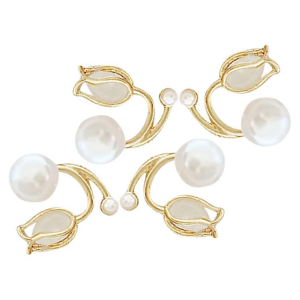 Flower Pearl Earring Design Simple Style Jewelry for Special Occasions Golden Color 1.80X1.60X0.50CM Plastic Material 2Pairs