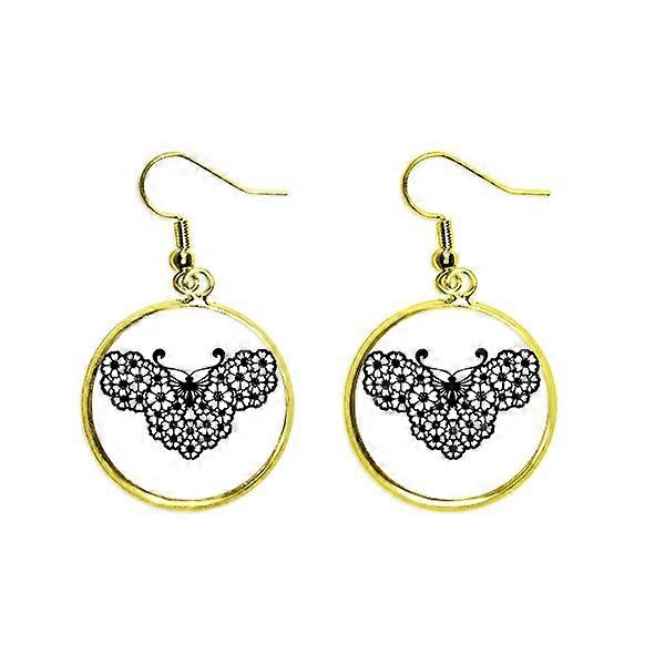 Butterfly with Floral Wings Ear Dangle Golden Drop Earring Jewelry Woman