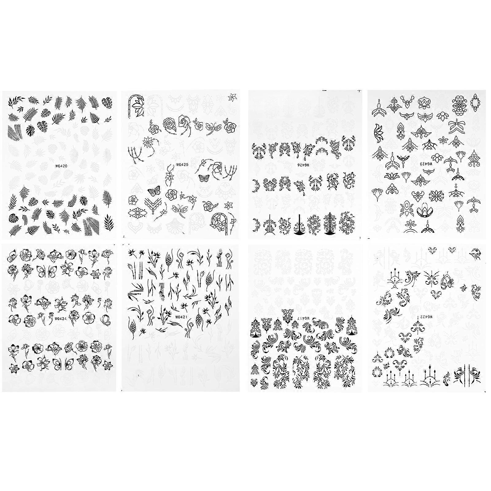 Floral Leaf Nail Sticker Diy Nail Stickers For Women Professionals Nail Salon 8 Sheets
