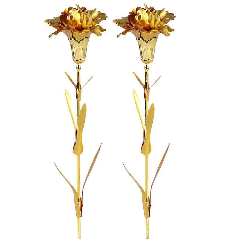 Floral Decor 24K Gold Foil Carnation Flower Ornament Luxurious Design Mother's Day Present for Mothers Golden 2Pcs