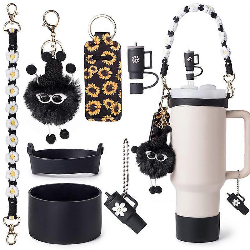 Floral Themed Thermal Cup Accessories Set Bottle Handle Strap/Silicone Cup Boots/Spill Proof Stopper/Hairball Charm Kit