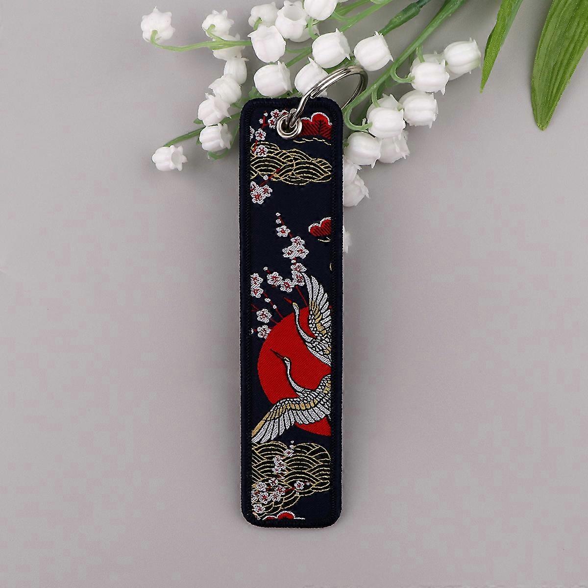 Flowers Crane Art Painting Embroidery Key Fobs Cat Key Tags Keychain For Motorcycles Cars Key Ring Accessories Chaveiro Jewelry