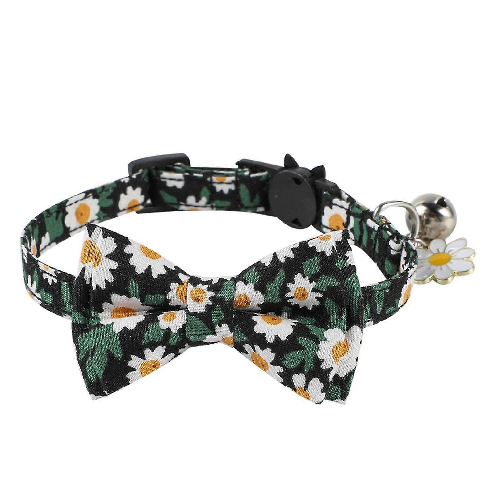 Flower Printed Dogs Cat Collar Adjustable Length Bowknot Decors Pet Collar Medium Large Cat Camping Travel Supplies Black