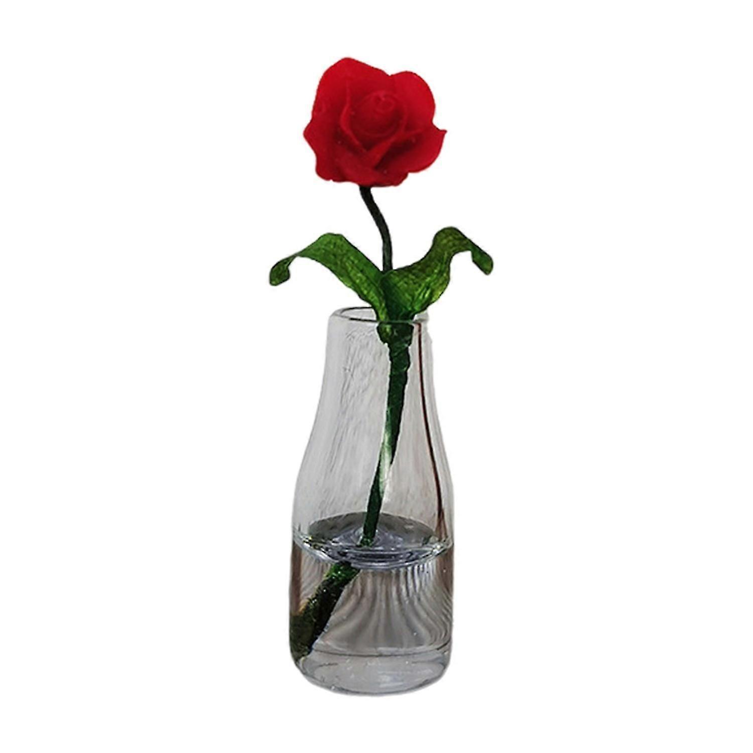 Flower Model Mini Resin Rose Flower Vase Ornament Durable Dollhouse Accessories for Pretend Play