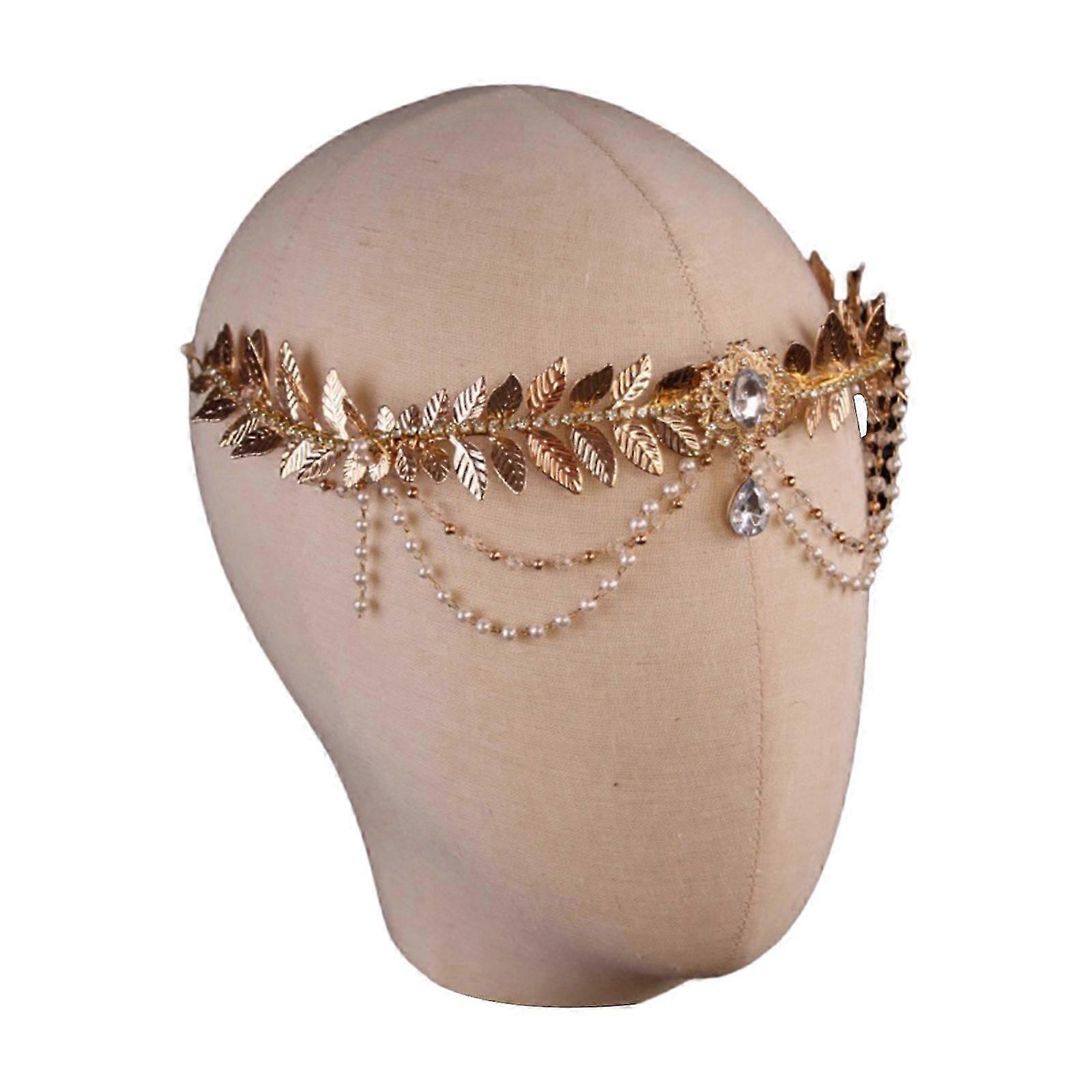 Golden Crystal Leaf Headband for Brides, Cosplay, and Live Shows