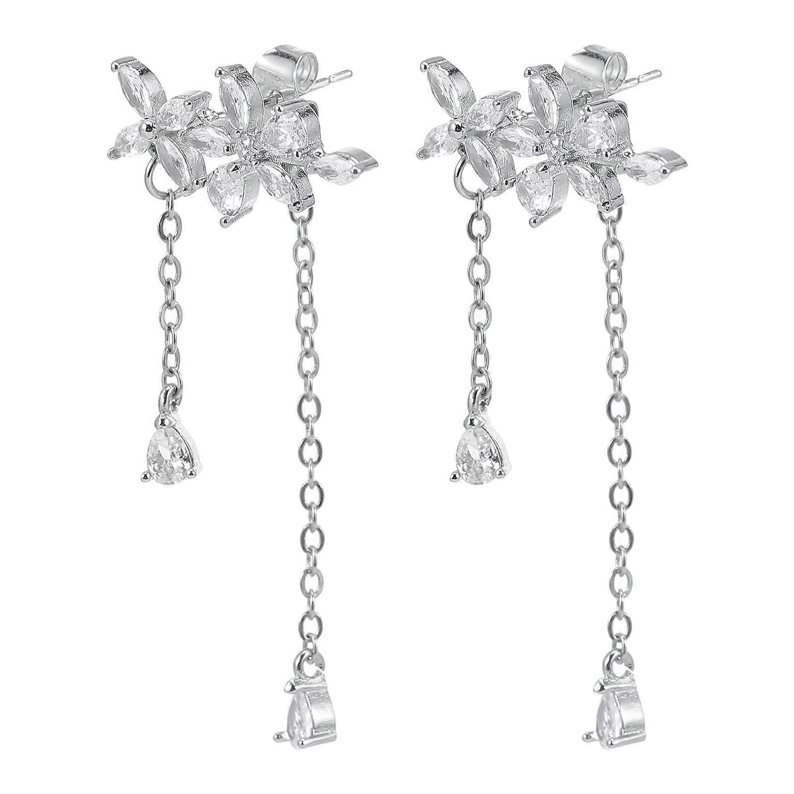 Bride Earrings Sweet Zircon Flower Long Chain Tassel Jewelry for Women Wedding Bridal Daily Wear 1Pair
