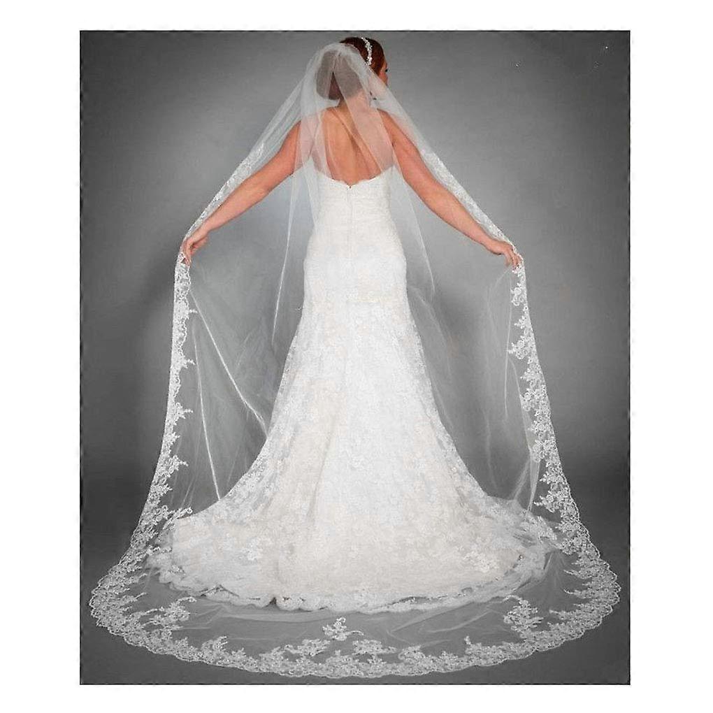 Bride Wedding Lace Veils Long Cathedral Veil Soft Tulle Bridal Veils with Comb 118" (White) - -