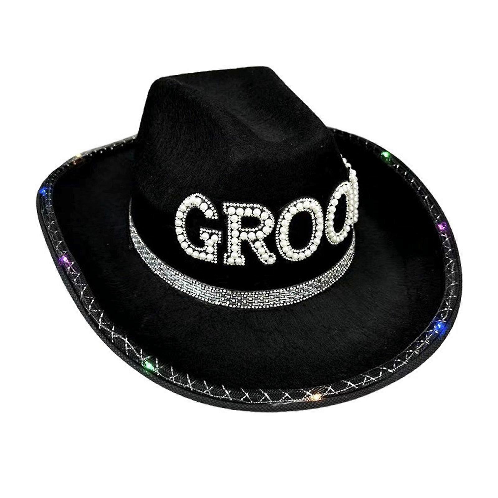 Flashing Bridal Hat for Bride Wedding Party Cowgirl Hat Bachelorettes Costume Hat Headwear Western Groom Props Hat Black