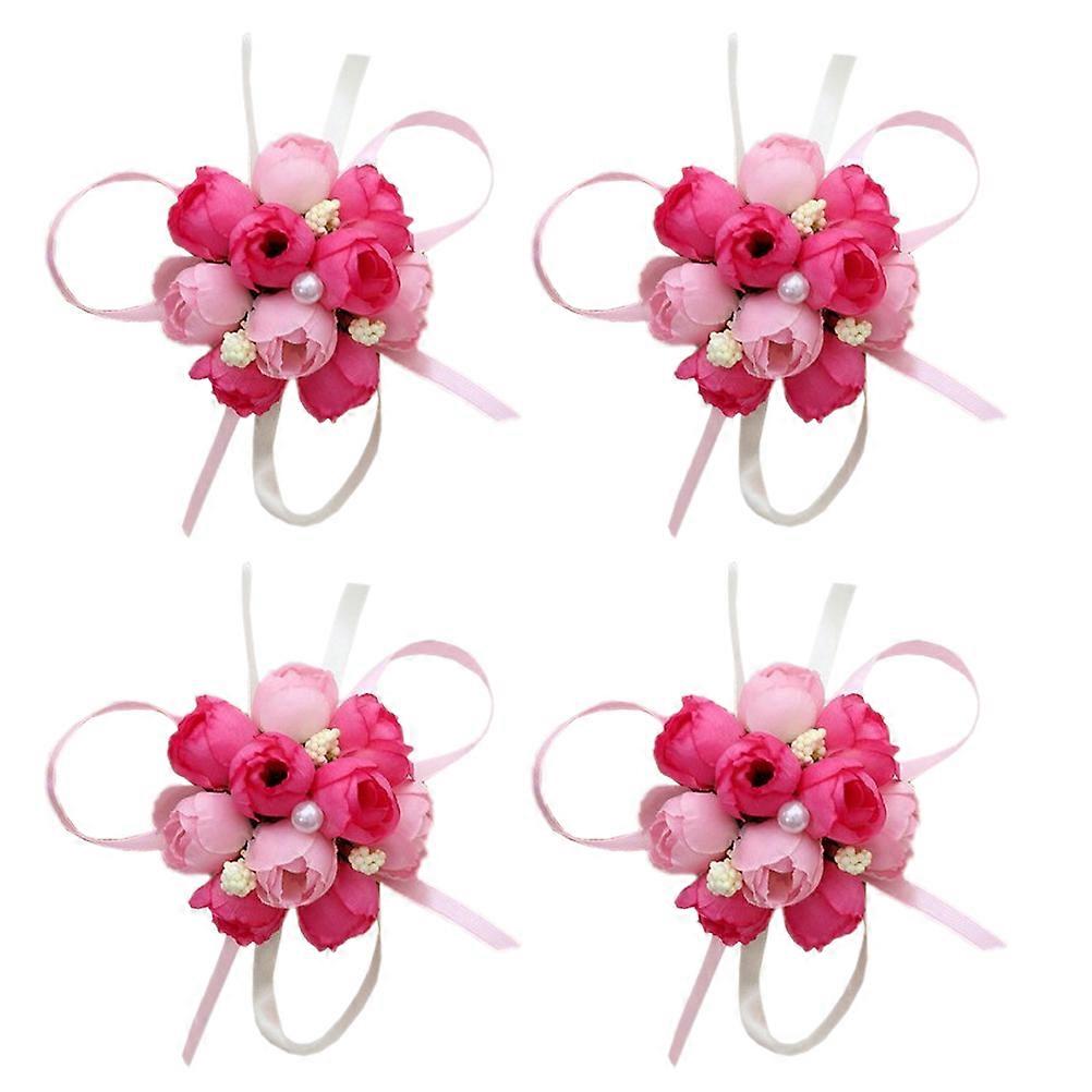 Bride Accessories Wedding Bridal Brooch Wrist Flowers Artificial Flower Bracelet Rosy Decorative For Women 4Pcs