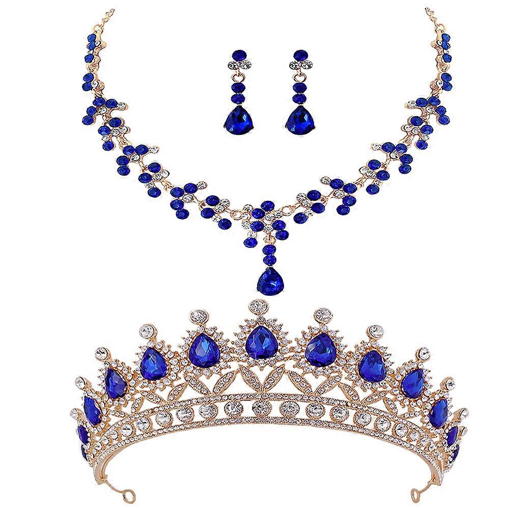 Bridal Jewelry Set For Bride Princess Necklace Wedding Rhinestone Jewelry Women Blue 16X16CM 1 Set
