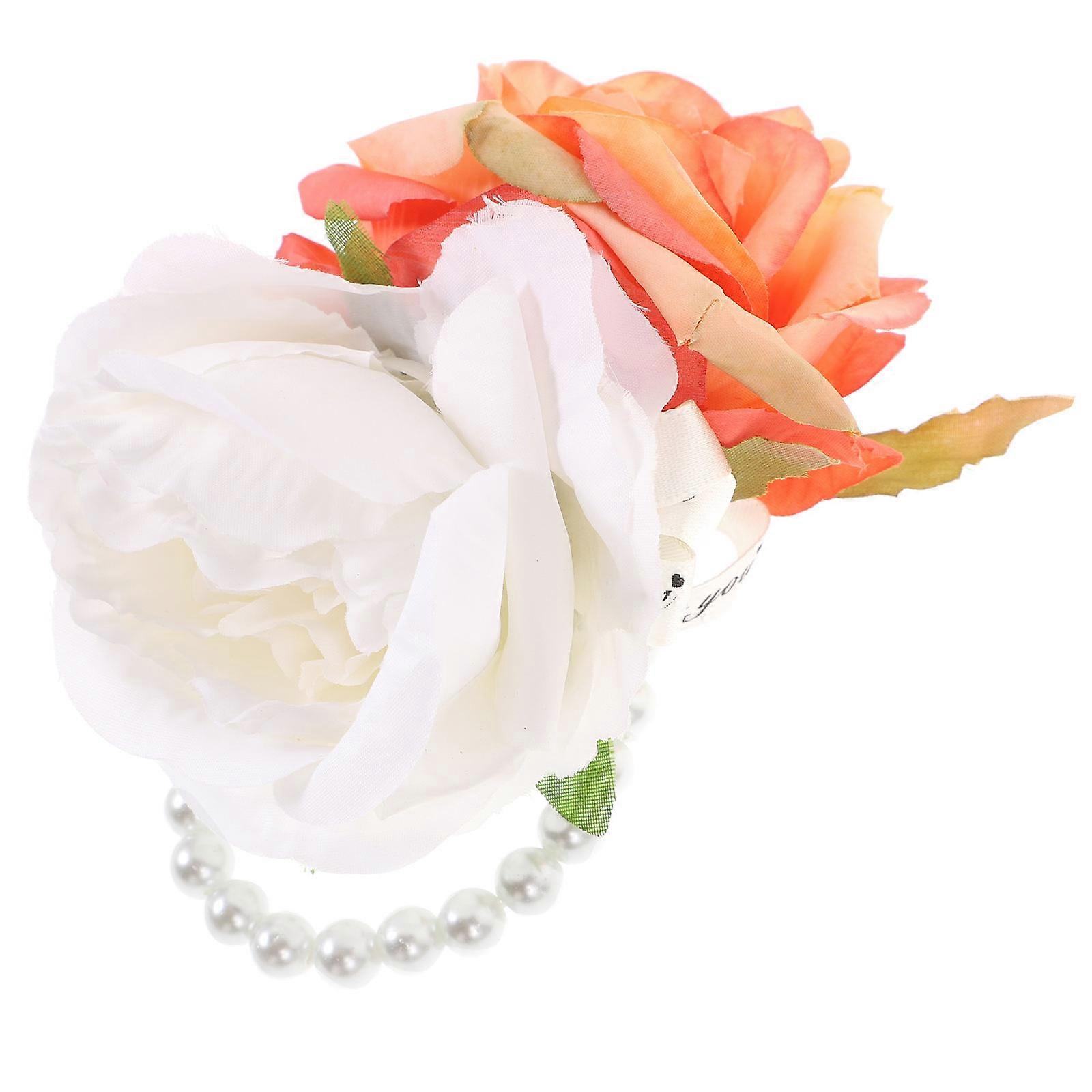 Bridesmaid Wrist Corsage Bracelet Round Shape Imitation Pearls and Silk Wedding Bridal Shower 12X8.5CM 1Pack