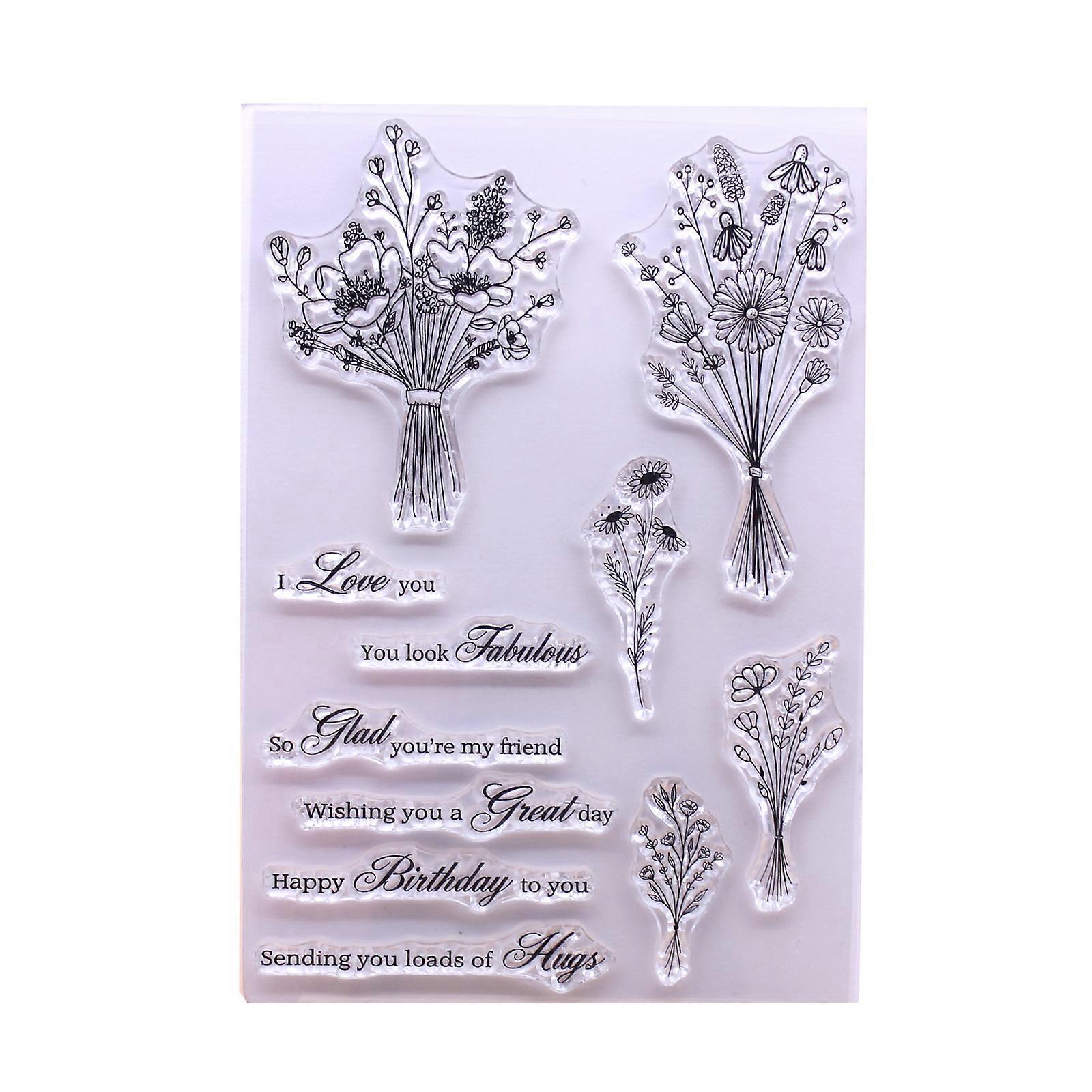 Flower Bouquets Blessing Words Clear Stamp Seal Handmade Crafts Embossing Decor for Card Making DIY Scrapbooking Photo Album Decoration Gift Supplies