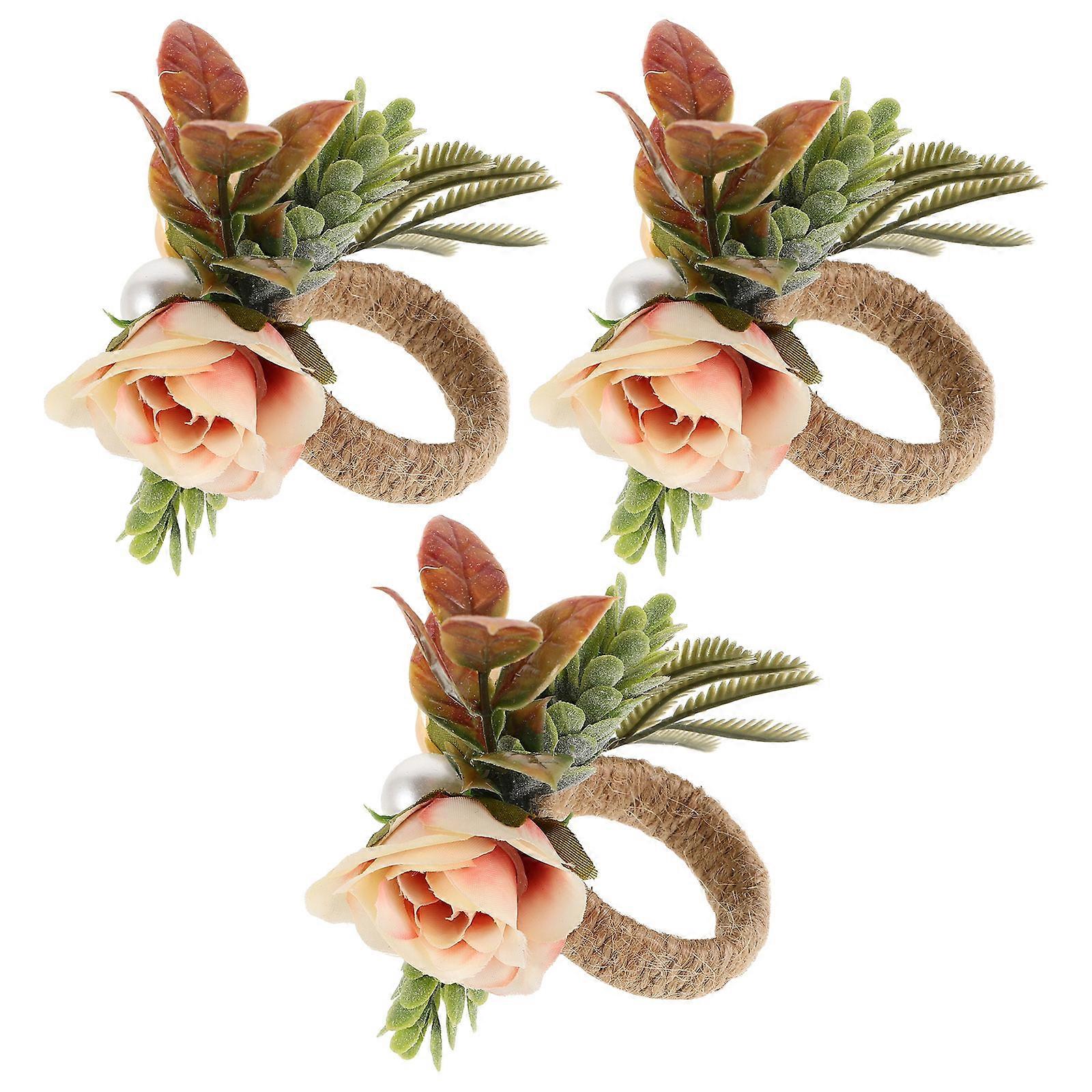 Floral Napkin Rings Rose Shape Rope Silk Cloth PP Material Dinnerware Accessory For Western Banquet Family Gathering 3Pcs