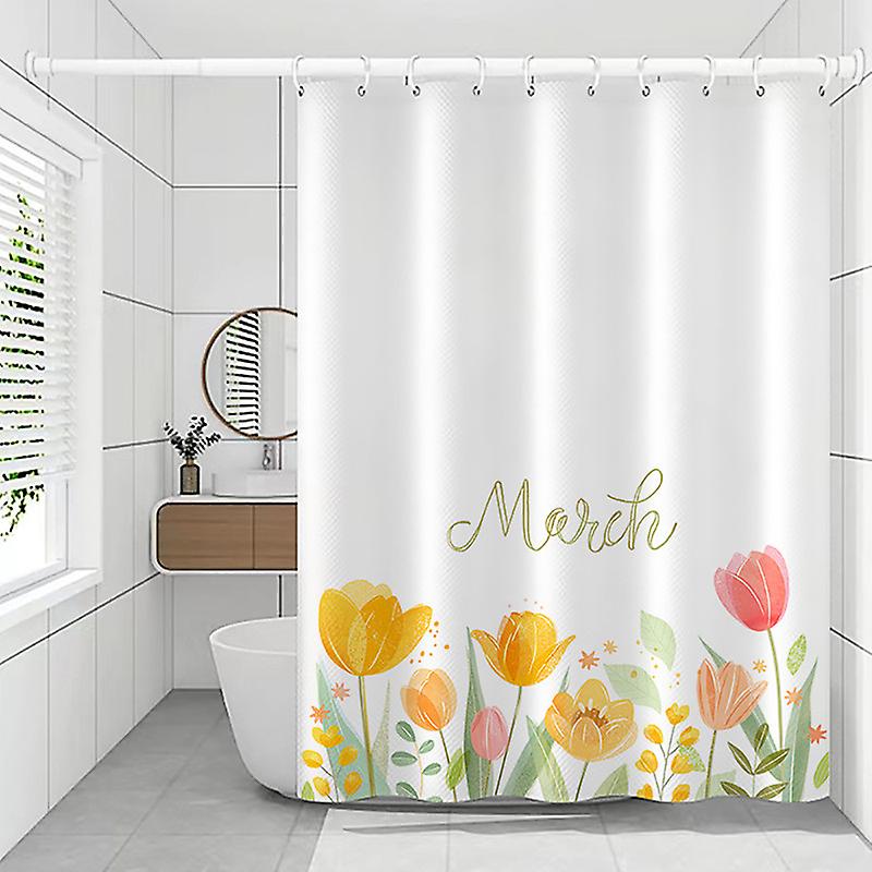 Floral Pattern Waterproof Washable Shower Curtains With Shower Curtain Rings, Made Of Polyester Fabric 90cm*180cm