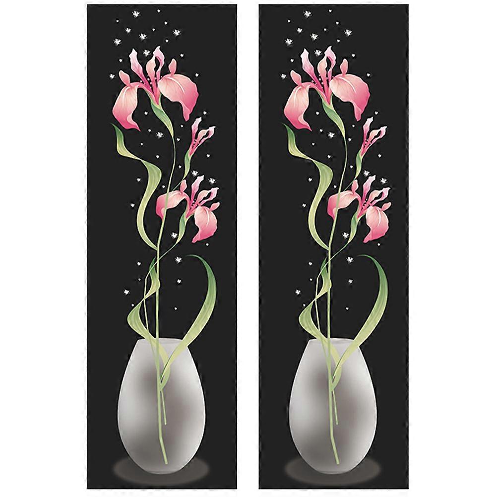 Flower Vase Wall Decal Room Decoration 90x30cm Black PVC 2 Sets for Bedroom and Living Room