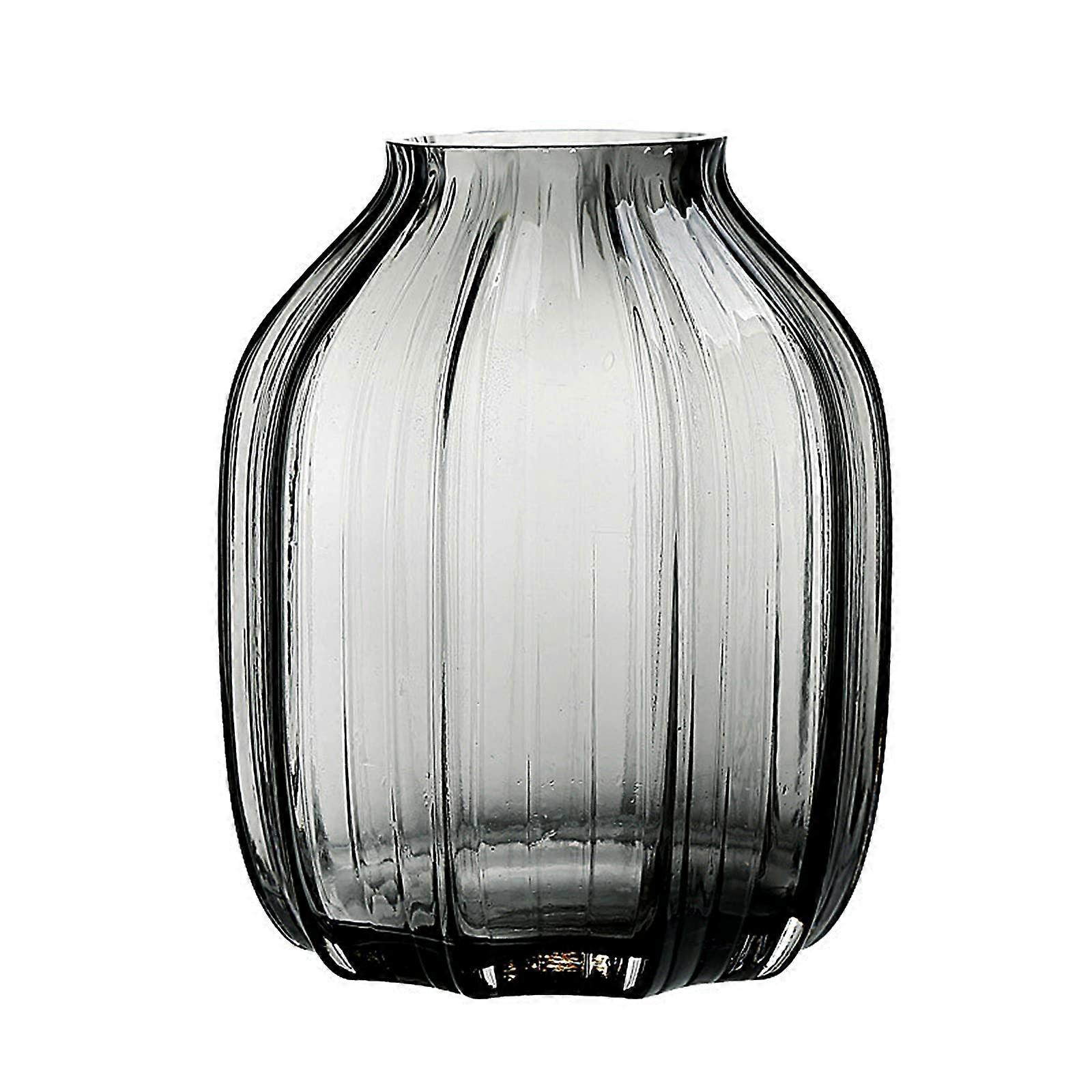This elegant gray glass vase is meticulously packaged to ensure safe delivery. Each vase is individually wrapped, and a thick cushioning material is included to prevent damage during transit. - Size Specifications : - Mouth Diameter: 3.34 inches - Body Diameter: 5.5 inches - Height: 8.0 inches - Thickness: Approximately 0.2 inches (note that variations may occur due to handcrafted nature) - Versatile Design : This vase is the ideal size for a wide range of flower arrangements, making it a flexible choice for different floral types. The popular ribbed design features a smooth, rounded mouth that prevents injuries during handling. - Stability : The vase's body and base are reinforced, ensuring stability and preventing tipping when placed on tables or countertops. - Practical Uses : - Perfect for displaying fresh flowers, creating a stunning centerpiece for weddings or events. - Can be used to hold candles for a cozy ambiance. - Functional for decorative storage, enhancing your home decor effortlessly. - Durability : Crafted from durable hand-blown glass, this vase may contain slight bubbles and imperfections, a testament to its unique, artisanal craftsmanship. Transform your space with this stylish and practical vase, perfect for any occasion or as a thoughtful gift.