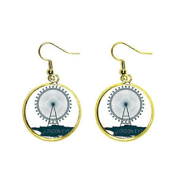 Britain UK London Eye United Kingdom Ear Dangle Golden Drop Earring Jewelry Woman