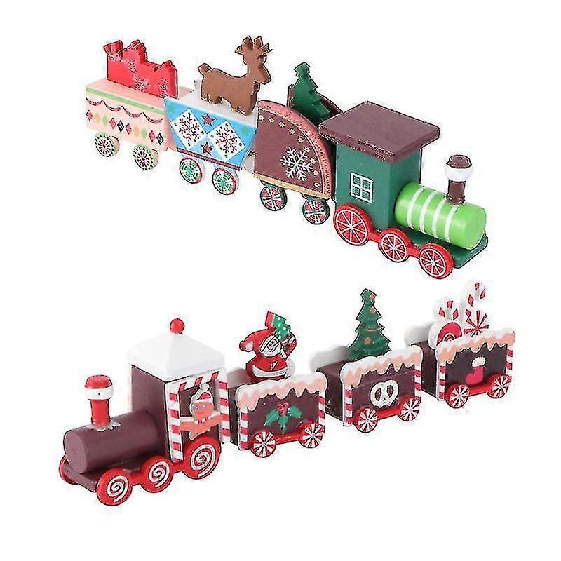 Pair of Red Wooden Desktop Train Models for Children's Festive Decor in British Households